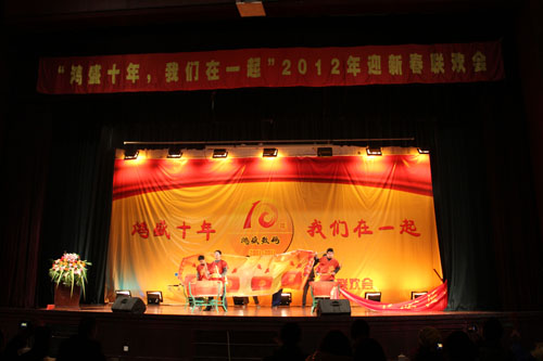 下午一點(diǎn)半,“鴻盛十年,我們?cè)谝黄稹兵櫴?shù)碼2012年迎新春聯(lián)歡會(huì)正式開始,測(cè)試中心的工程師們一陣激情的大鼓拉開了整個(gè)活動(dòng)的序幕。