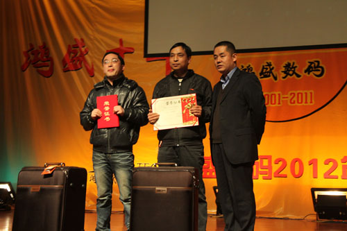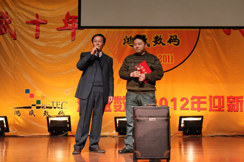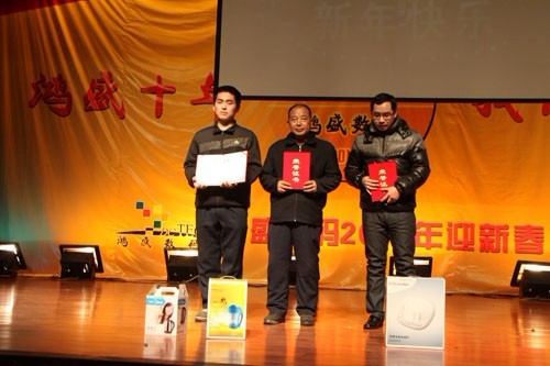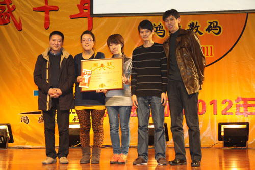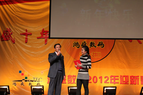 鴻盛數(shù)碼創(chuàng)建于2001年,至今已走過了十年的歷程,十年間,鴻盛數(shù)碼上下齊心,艱苦奮斗,一年一個(gè)臺(tái)階,向世人呈現(xiàn)了一個(gè)強(qiáng)大、繁榮、有責(zé)任感的噴墨企業(yè)。值此龍年新春佳節(jié)即將到來之際,鴻盛數(shù)碼全體員工歡聚一堂,在高新區(qū)金橋商務(wù)酒店舉行了“鴻盛十年,我們?cè)谝黄稹兵櫴?shù)碼2012年迎新春聯(lián)歡會(huì)。