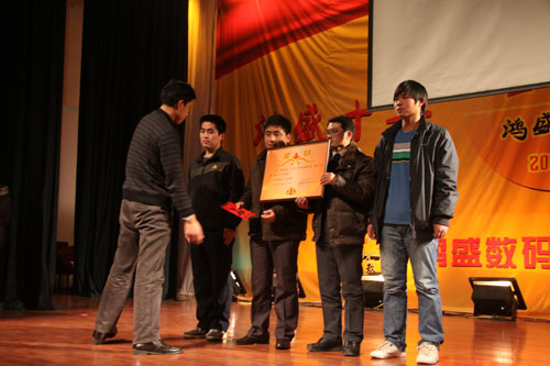 依照鴻盛數(shù)碼慣例,共頒出單項(xiàng)獎(jiǎng)8項(xiàng),分別為:鴻盛先生及提名獎(jiǎng) 鴻盛小姐及提名獎(jiǎng)、金領(lǐng)帶獎(jiǎng)、金胸花獎(jiǎng)、特殊貢獻(xiàn)獎(jiǎng) 、鴻盛獎(jiǎng)?wù)拢粓F(tuán)隊(duì)獎(jiǎng)4項(xiàng),分別為:“管理2011 ”年度大獎(jiǎng)、*佳業(yè)務(wù)進(jìn)步團(tuán)隊(duì)獎(jiǎng),*佳服務(wù)團(tuán)隊(duì)獎(jiǎng),*佳生產(chǎn)力團(tuán)隊(duì)獎(jiǎng)。