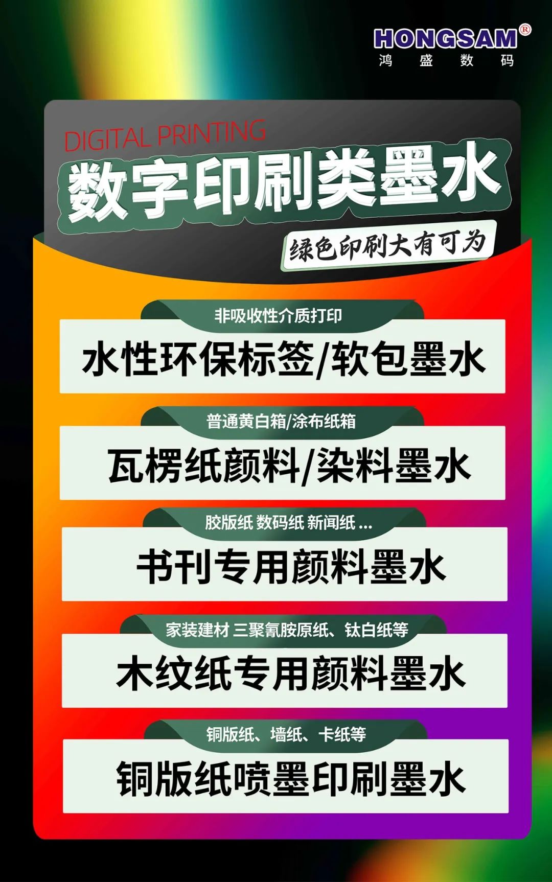鴻盛數(shù)碼作為噴墨行業(yè)的領(lǐng)先企業(yè),其水性環(huán)保乳膠方案在行業(yè)內(nèi)具有較高的認(rèn)可度,尤其在環(huán)保和材料適應(yīng)性方面表現(xiàn)出色。