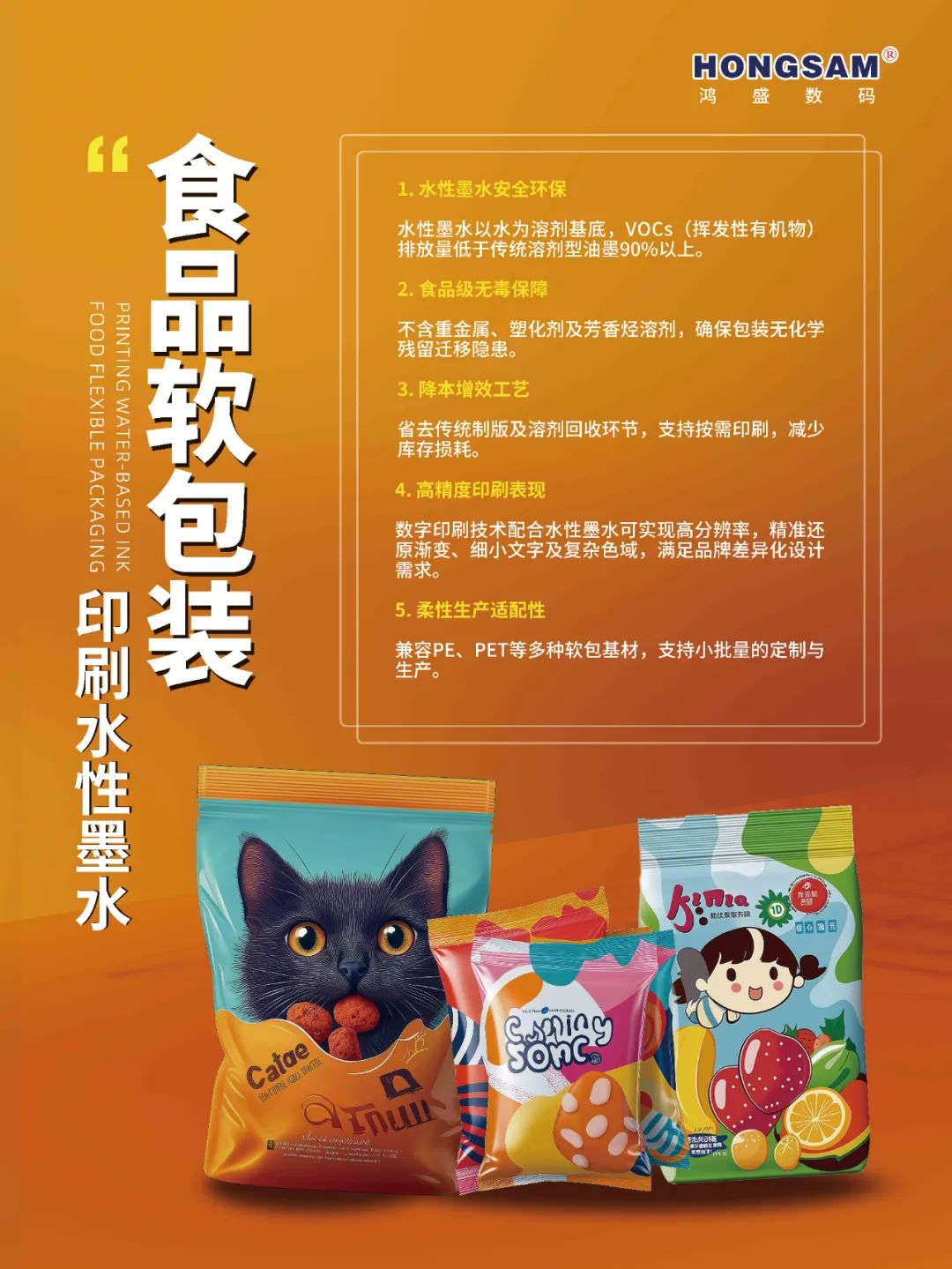 鴻盛數(shù)碼在展會(huì)上的表現(xiàn),不僅展示了在數(shù)碼噴墨墨水行業(yè)的專(zhuān)業(yè)實(shí)力,也體現(xiàn)了其對(duì)創(chuàng)新和環(huán)保的持續(xù)追求。通過(guò)這些前沿技術(shù)和產(chǎn)品,鴻盛數(shù)碼為印刷行業(yè)提供了高效、環(huán)保的數(shù)碼印刷解決方案,推動(dòng)了行業(yè)的綠色發(fā)展和技術(shù)創(chuàng)新。在本次展會(huì)鴻盛數(shù)碼展示了數(shù)字印刷類(lèi)墨水、HJ-1808L水性環(huán)保食品軟包解決方案、HJ-ArtSmart數(shù)碼打印機(jī)、HJ-6090L水性環(huán)保平板打印機(jī)、JETALL®水性環(huán)保打印方案等,不僅滿足了不同材質(zhì)和應(yīng)用場(chǎng)景的需求,更體現(xiàn)了鴻盛數(shù)碼在環(huán)保和可持續(xù)發(fā)展方面的堅(jiān)定承諾,為行業(yè)內(nèi)外人士帶來(lái)了全新的打印解決方案。