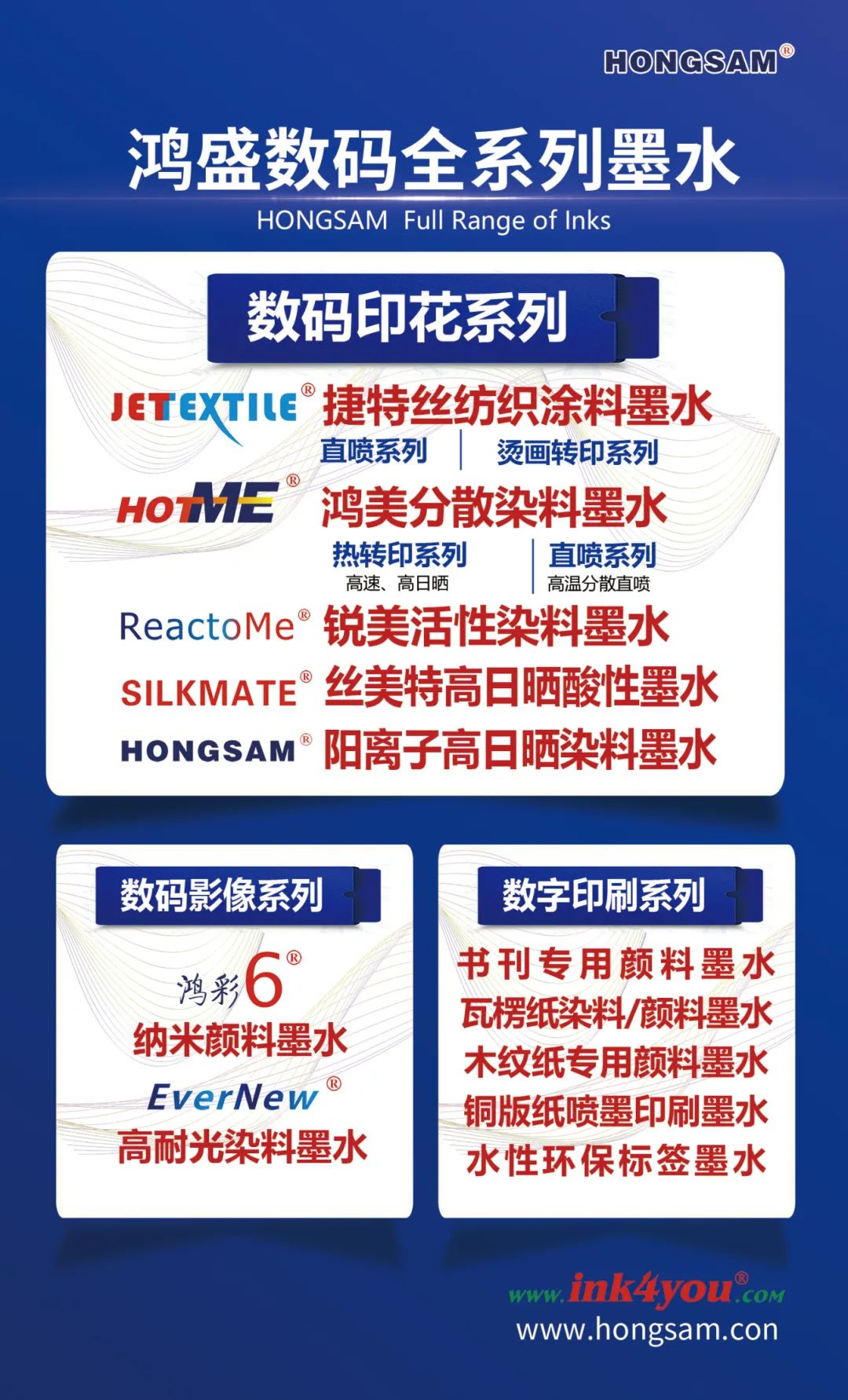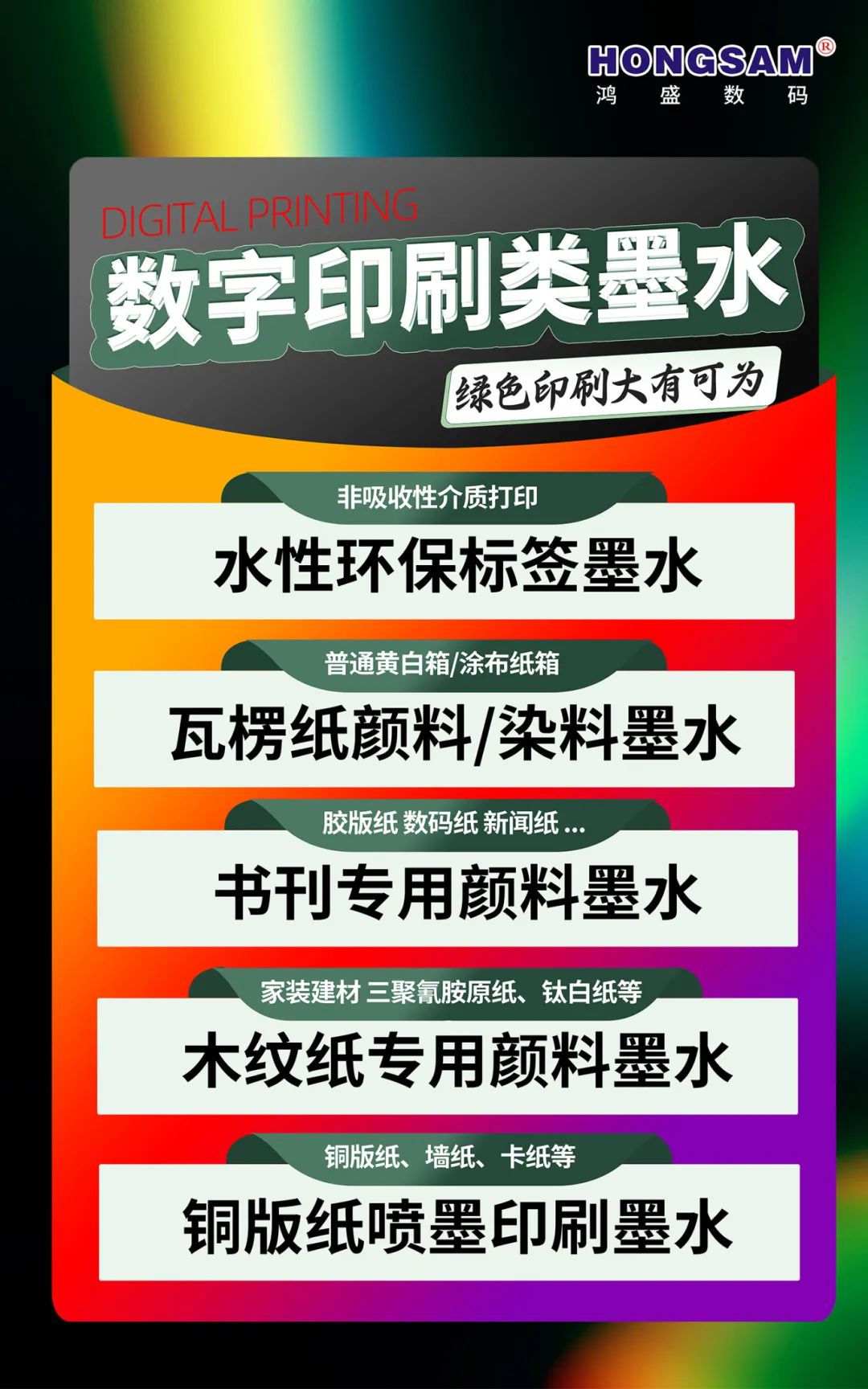 鴻盛數(shù)碼成立于2001年,專注噴墨墨水研發(fā)生產(chǎn)24年,致力于噴墨墨水的研發(fā)、生產(chǎn)、銷售;同時(shí)提供完善的數(shù)碼印花及印刷解決方案,提供專業(yè)、高效的售前、售中、售后服務(wù)。
